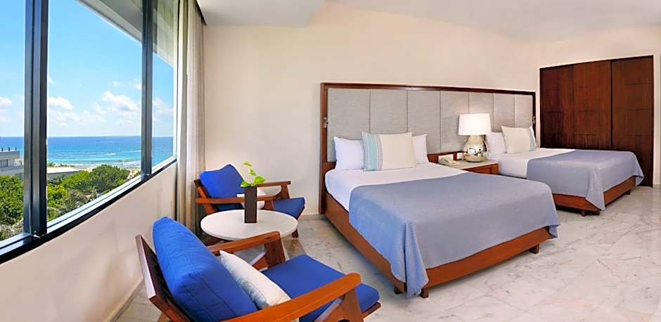 The Park Royal Cancun sets the standard high. The Park Royal's basic guest room affords a partial, but still impressive view of the Caribbean, the lagoon or the gardens. Each room is spacious, beautifully maintained and a pleasure to behold by morning or night. Impeccably kept, each studio is outfitted with two luxurious double beds, adjustable air conditioning, full bathroom with shower/tub combination, 27” flatscreen cable TV, direct dial telephone, hair dryer, secure electronic key and spotless marble floors. In-room strong boxes, turndown service, irons/ironing boards are all available upon request.