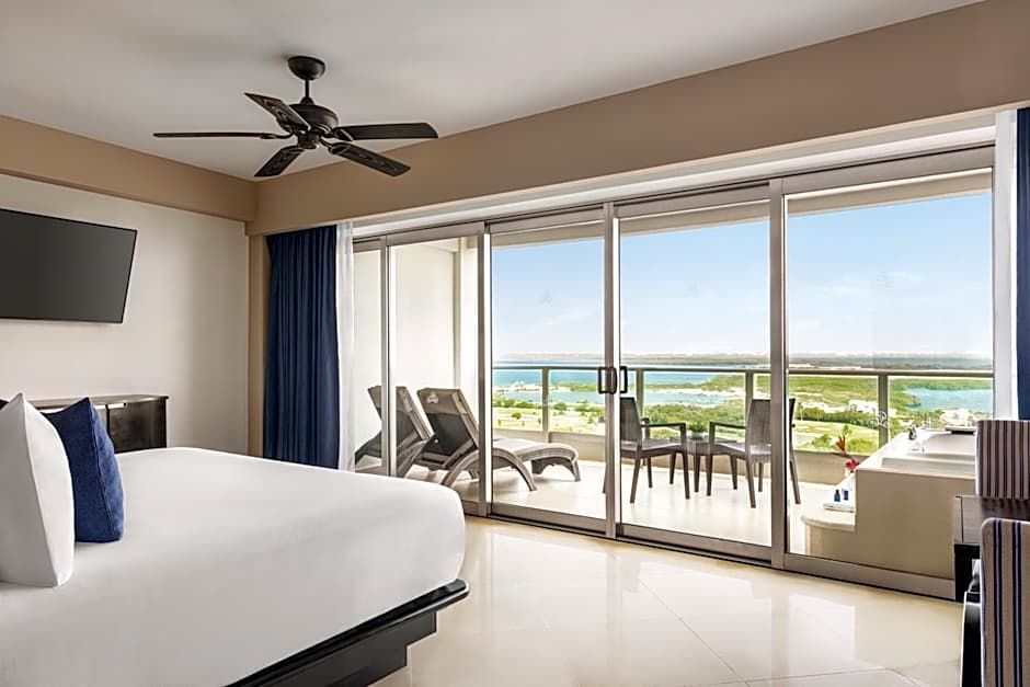 This air-conditioned and non-smoking room features a balcony with a hot tub and Nichupte Lagoon view. There is a 50-inch flat-screen satellite TV, a mini-bar and 24-hour room service. Offers a king size bed, a bathroom with shower, a mini fridge, an electronic deposit box. Also has a available a phone, hairdryer and iron.