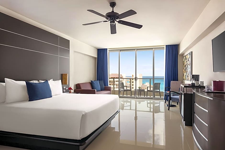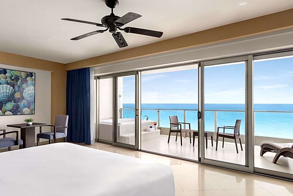 This room provides an ocean view with a balcony, king size, bathroom with shower, private Jacuzzi in balcony, mini-bar, coffee machine, electronic safe deposit box, air-conditioning, 50´´ flat screen television with cable service, telephone, hair dryer, iron and ironing board, 24 hours Room Service, Nonsmoking room. This room is only available for Adults 18+