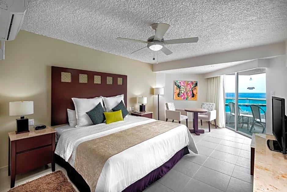 Deluxe All Inclusive Elite is 54 square feet and includes a double bed 131-150 width plus balcony, hairdryer, and safe and is Wheelchair-accessible.