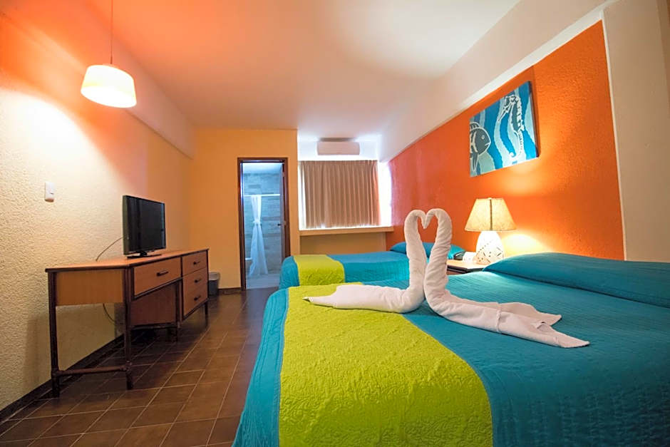 Hotel Plaza Cozumel offers Standard Double Rooms that can accommodate up to 4 adults and 2 children. These rooms have a size of 301 sqft and do not allow smoking. They are equipped with 2 double beds for the guests' comfort.