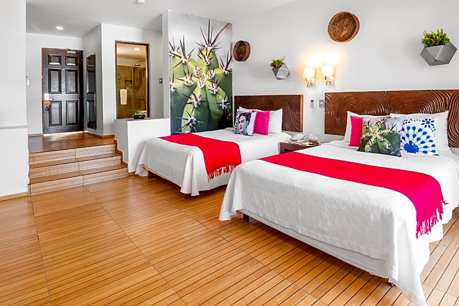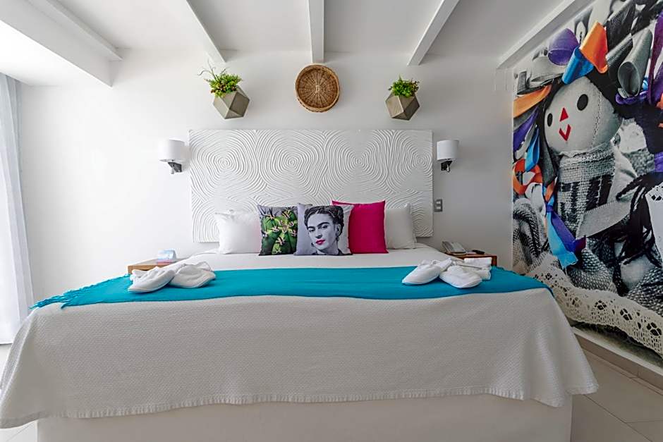 A spacious and chic guestroom decorated with fresh Mexican style plus a terrace with Jacuzzi and marvelous views to Caribbean Ocean. Featuring: one King size bed, a luxurious bathroom and a separate shower with ocean view. You will be surrounded by sea. The deluxe Jacuzzi Ocean View rooms offer unique amenities and benefits ideal for couples.