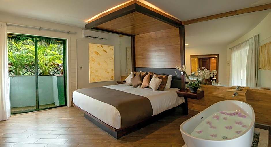 Featured amenities include Spa/Wellness packages, Parking (extra charges), Snorkeling (extra charges), Restaurant, Outdoor swimming pool (free), Adults only, Wifi (free), Room service, Shuttle service (extra charges), Steam room, Spa (extra charges), Airport shuttle (extra charges), Golf course (extra charges), Sauna (extra charges), Air conditioning, Bar, Massage (extra charges), Terrace, 24-hour front desk, Non-smoking rooms, Garden view, Garden, Bathtub, Free toiletries, Balcony.