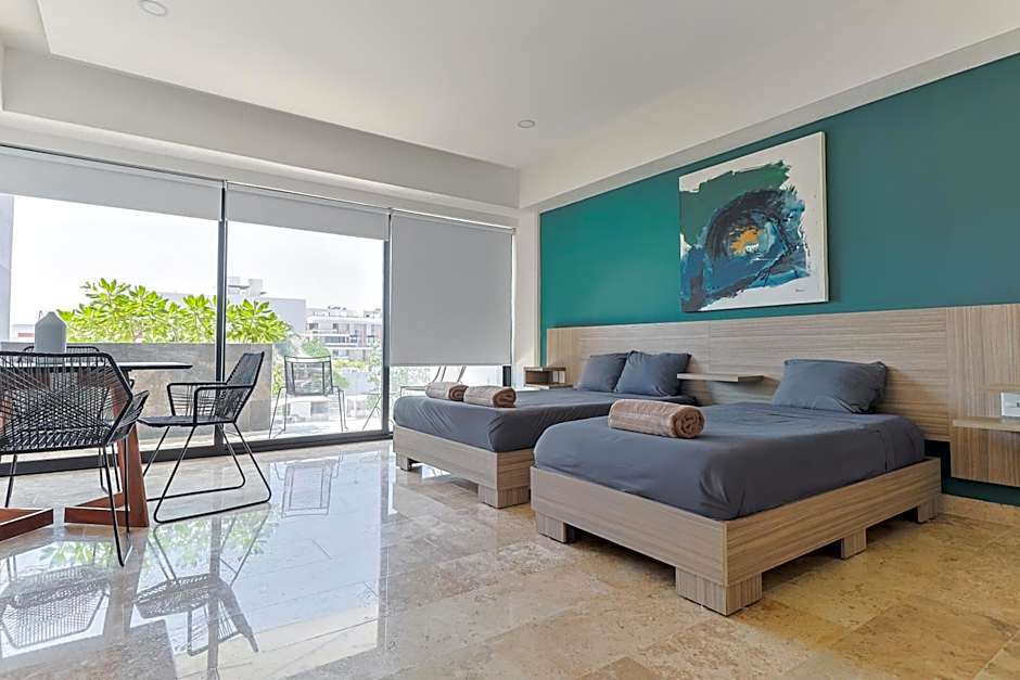 We are in love with this place. We spent 7 nights in two different studios, both were great. Clean and new, equipped with everything you need to make your stay amazing. The building is new and well maintained. The rooftop pool is a unique place to relax in the hours after the beach. Located in the heart of 5th avenue and walking distance from the beach (7 min). There are many bars and restaurants nearby (we recommend El Pirata). The place certainly exceeded our expectations and we highly recommend it. We will definitely go back there again!