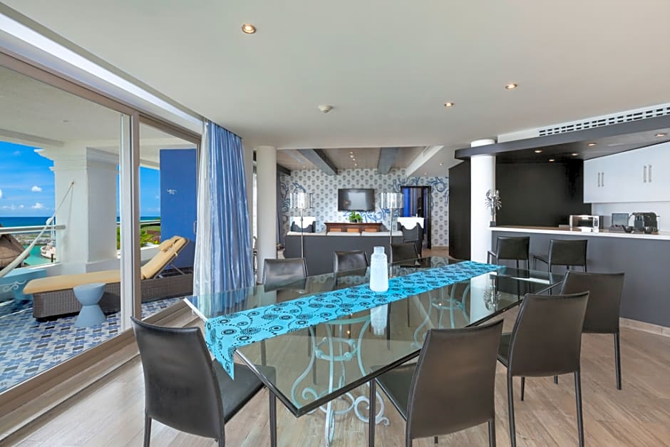 Rock Suite Ocean Front Rooftop Lounge (Two Bedroom) with personal Asistant Heaven is 5167 square feet and includes either a king-size bed 150-183 width or 2 double beds 131-150 width.