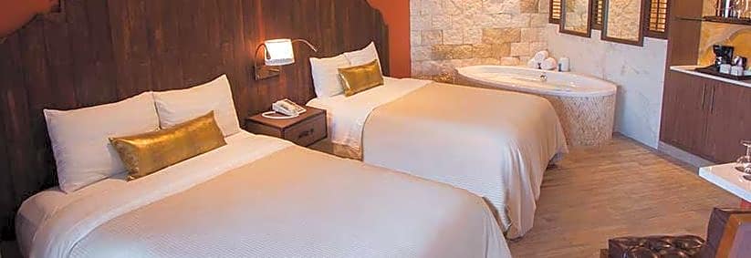 Deluxe Grand Sky Terrace (Two Bedroom) Hacienda is 1927 square feet and includes either a king-size bed 150-183 width or 2 double beds 131-150 width.
