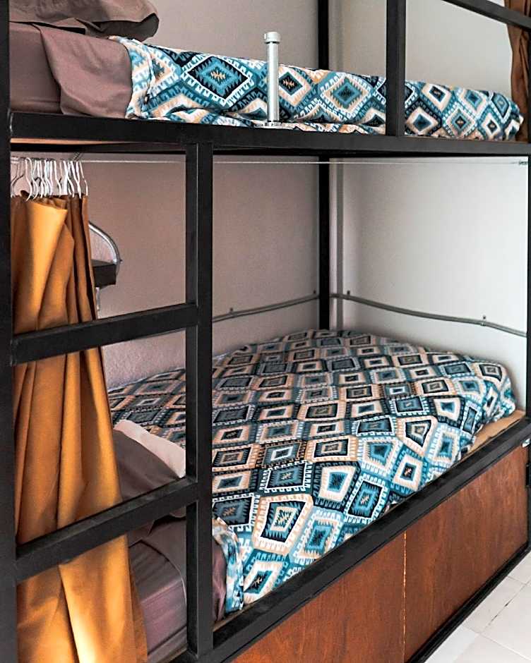 At present this hostel works out to about 17USD a night. In MX, mosquitos are everywhere, this hostel provides AC in the room at night, this keeps the mosquitos down at night, otherwise they are everywhere and it is advisable to make sure you have serious mosquito liquid for your skin, use it as soon as you get up, on any exposed skin and do it again after you shower or enter the ocean. The hostel has a full kitchen with stove, pans, plates, a large fridge, but no microwave. NO Tv. A nice book shelf with books. Nice rooftop space but its closed after 9pm. Power outages are common in Puerto Morelos. They do have bicycles for rent. it is 4 flights of stairs to reception. This is the only hostel that is Port side, otherwise it is a 2 mile road across to the Colonia Town for any other hostel style accomodation. There is an excellent Grocery nearby. There are also petite built in lockers with keys big enough for personal bits and laptop for each bunk.