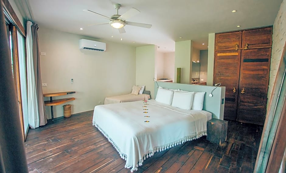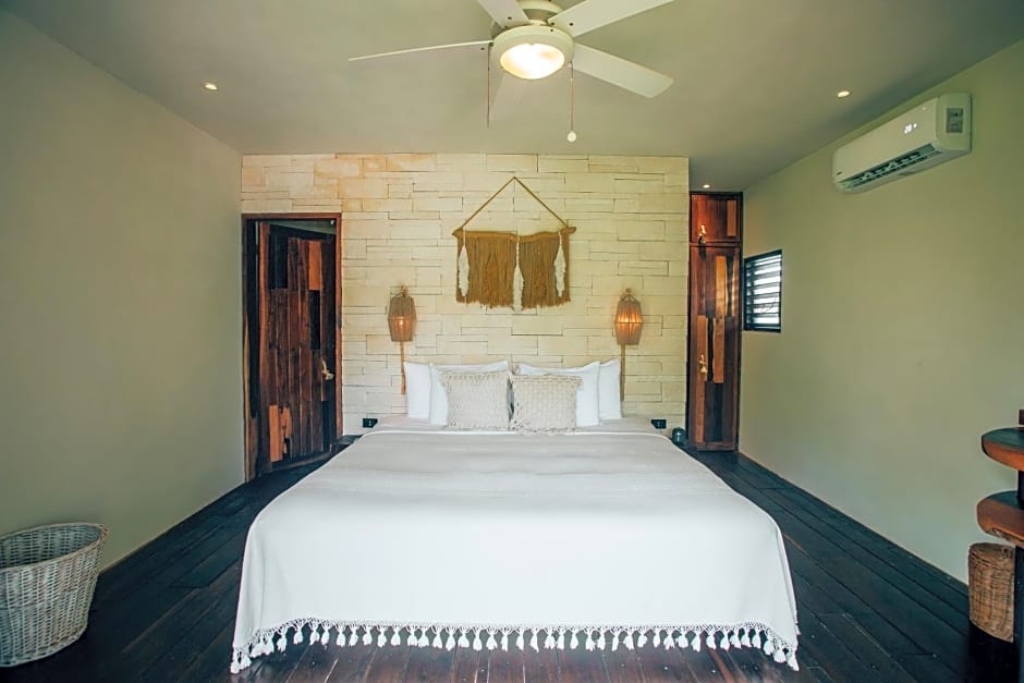 Directly perched along the sands of Tulum, the property opens onto a private beachfront area with easy access to the shore. Snorkeling is available on-site for those who want to explore the turquoise shallows (extra charges apply), adding a playful splash to days spent by the water and golden sunsets over the horizon.