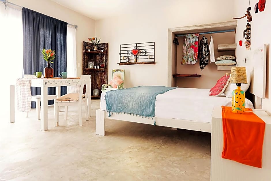 The hotel XscapeTulum offers a variety of room types including studios, suites, and apartments. Rooms range in size from 323 sqft to 753 sqft and can accommodate 2 adults, with some rooms able to accommodate 1 or 2 children as well. Smoking is not allowed in any of the rooms. Beds in the rooms vary, with options including queen size, king size, double, and sofa beds.