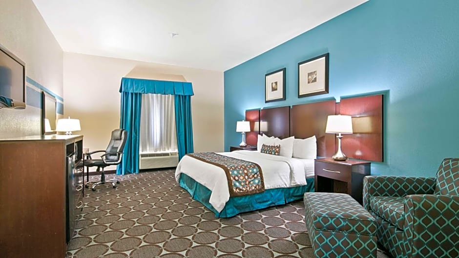 The Best Western Sonora Inn & Suites offers a variety of room types including Deluxe Queen Suite with Two Queen Beds, King Room, Deluxe King Suite, King Room with Disability Access, King Suite with Roll-in Shower and Disability Access, Queen Suite with Two Queen Beds and Disability Access, King Suite with Spa Bath and Disability Access, Queen Room with Two Queen Beds, and King Suite with Spa Bath. All rooms are non-smoking and have an occupancy range of 2 adults and 1 child to 4 adults and 3 children. The bed sizes range from double beds to queen-size beds.