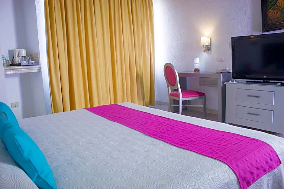 The hotel Mia City Villahermosa offers a range of room options including Executive Rooms, Family Rooms, and Suites. Occupancy varies with rooms accommodating up to 6 adults and 2 children. Smoking is not allowed in any of the rooms, and bed sizes range from double beds to a king-size bed plus a sofa bed.