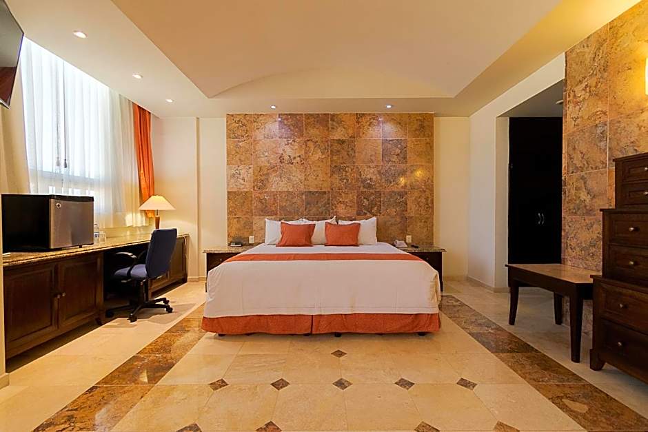 Hotel Poza Rica Centro offers a variety of room types including 1 King Bed Suite, 2 Double Beds, and Deluxe Suite. All rooms are non-smoking, accommodate 2 adults and 1 child, and feature different bed sizes such as King, Double, and Queen beds. Larger rooms like the Deluxe Suite offer more space, ideal for families.