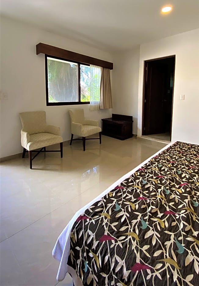 As the sun begins to dip toward the horizon, unwind by the invigorating adult-only outdoor swimming pool, where the shimmering water beckons you for a refreshing dip. Picture yourself lounging on a comfortable deck chair, cocktail in hand, while surrounded by gorgeous greenery and colorful flora in the garden. It's the perfect escape after a day of exploring Mérida!