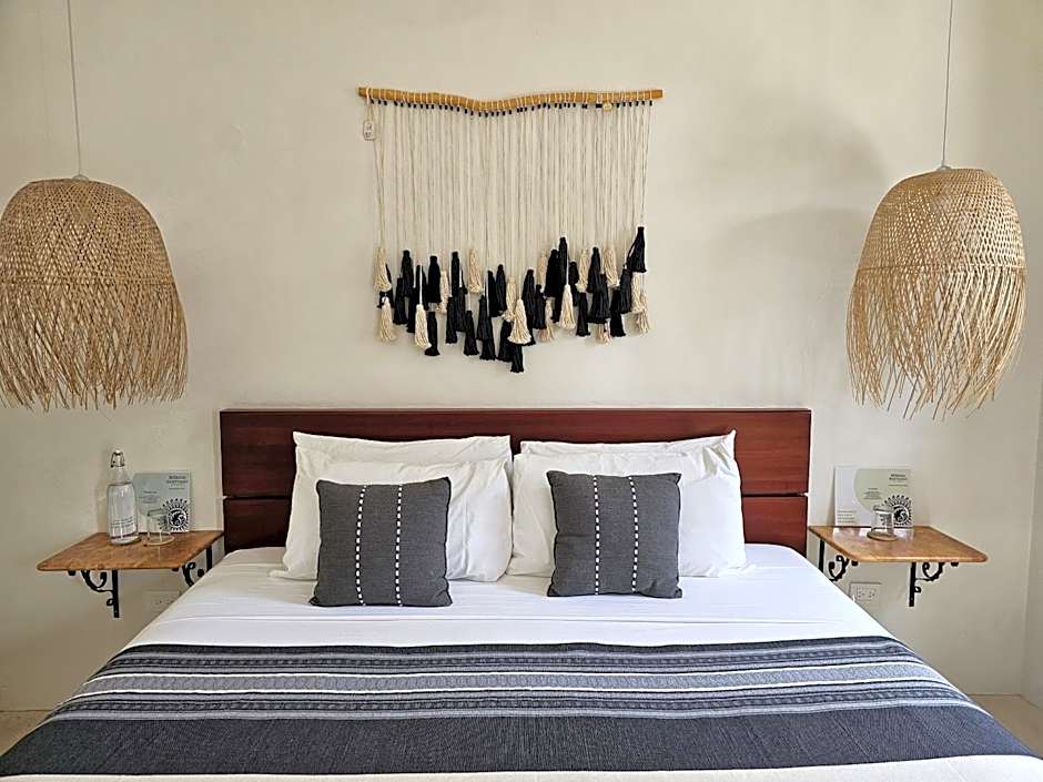Features a king-size bed, a sofa, a fridge with free cold water, Wi-Fi access, a hammock, a safety deposit box, an individual air conditioning with remote control, 2 ceiling fans, and a flat-screen TV. The luxurious private bathroom features 2 marble sinks, a walk in rain shower, a make up mirror, free toiletries, a hairdryer, and a 2-person spa bath with hydro-massage and chroma-therapy. The suite has a balcony with 2 chairs and a view of the pool and courtyard.