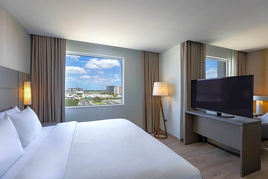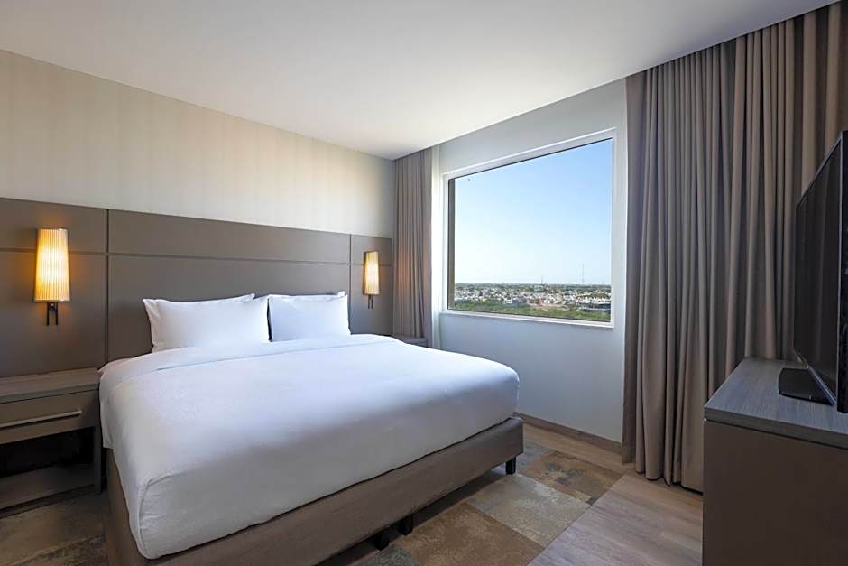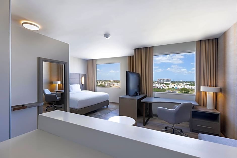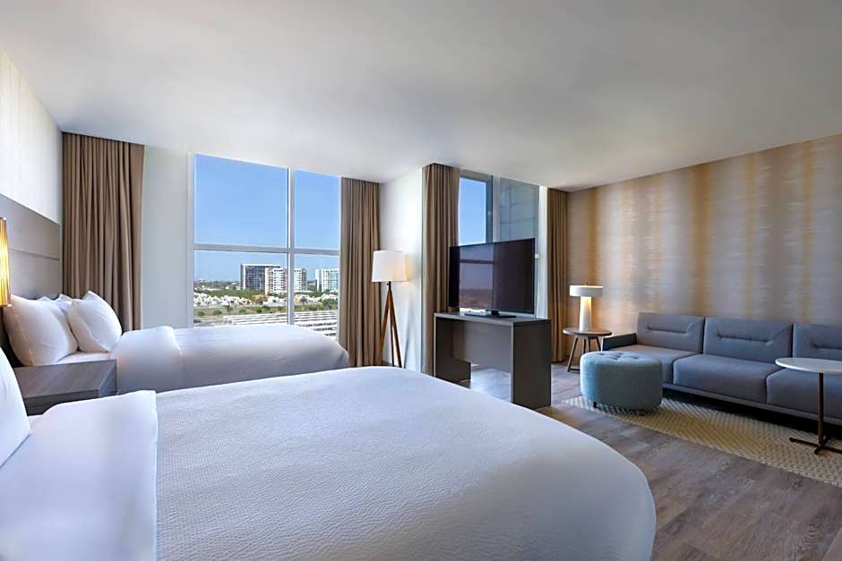 The Residence Inn by Marriott Merida offers Studio rooms with city views. There are options with either 1 King bed and a sofa bed or 2 Queen beds. The rooms are non-smoking and accommodate varying numbers of adults and children, ranging from 2 adults and 1 child to 4 adults and 3 children.