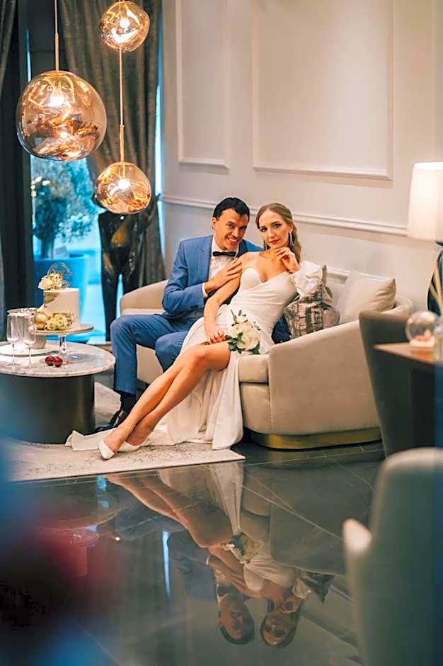 This presidential suite offers luxury decorated and spacious bedroom with a seating area. It comes with 2 balconies offering panoramic views of the sea and coast. Luxurious furnishing, Hästens beds and comfortable outdoor furniture are available in the room.