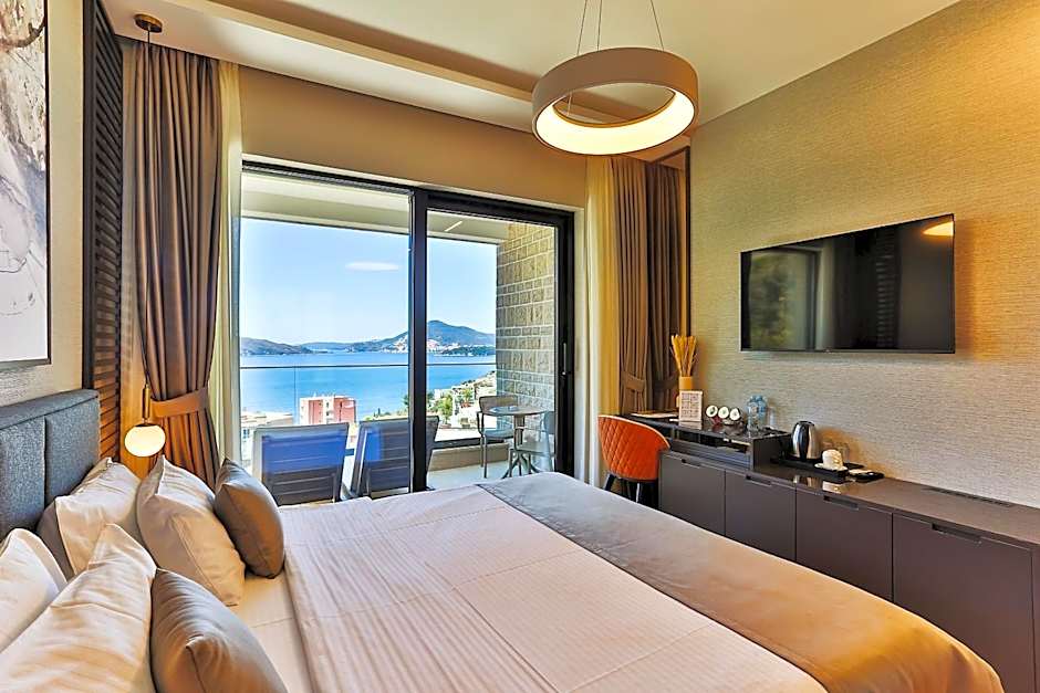 On-site Restaurant #1 serves Mediterranean cuisine in ambiances ranging from FamilyFriendly to Traditional, Modern, and Romantic. Accepted payment methods include cash, Visa, and Mastercard. A variety of room options is available, such as Superior (Sea View, 2 Twin), Standard Room, Standard Studio, Apartment (1 Bedroom, Sea View), Apartment (1 Bedroom), Penthouse Apartment, and Superior Studio with Sea View, among others. Reviews total 605, signaling traveler interest in this prime Montenegrin coast spot.