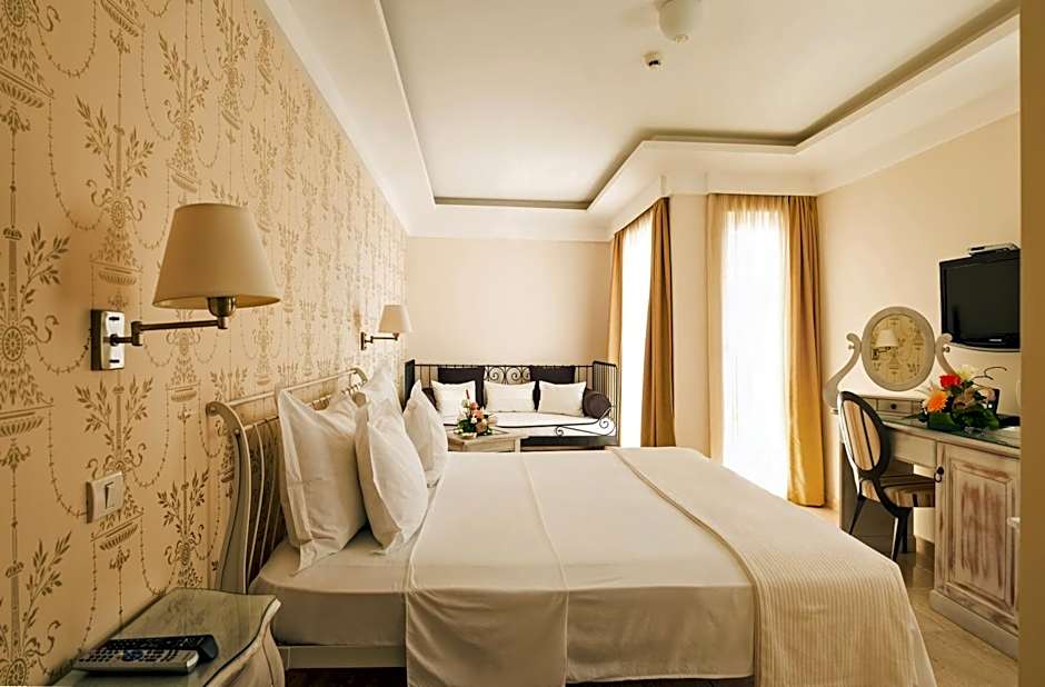 This elegantly decorated room features a balcony with a sea view, air conditioning and a mini-bar.