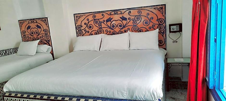 The Hotel Moroccan House offers a variety of rooms including Family, Single, Quadruple, Apartment, Triple, Suite, and Double rooms. The occupancy ranges from single occupancy for the Single room to accommodating 4 adults and 2 children in the Superior Quadruple Room. Smoking is not allowed in any of the rooms. Bed sizes range from Twin beds to King size beds, and room sizes vary from 151 sqft for the Single Room to 431 sqft for the Two Connecting Double Rooms and the Suite.