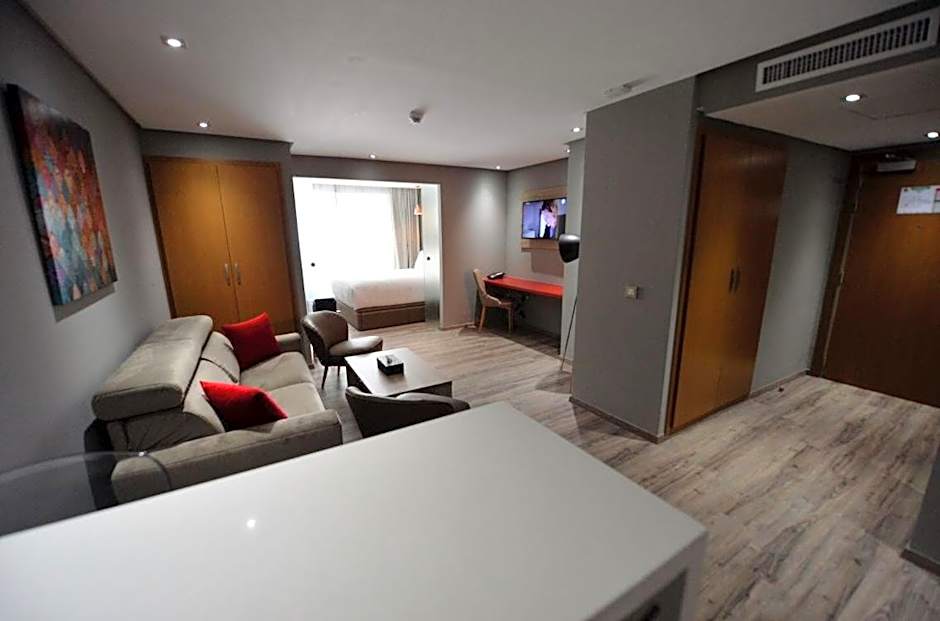 The hotel offers Executive Studio rooms, which are non-smoking and can accommodate two adults in a 237 sqft space with a double bed.