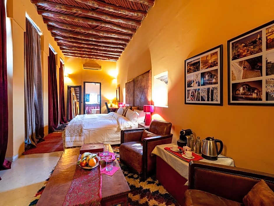 Located within the main building of the Kasbah, these rooms have panoramic views of the olive groves and Atlas Mountains. Each with its own private terrace, they boast oversize baths and large seating areas. The room can be arranged as a super king or two doubles room. Breakfast, fruit and complimentary water is included.
