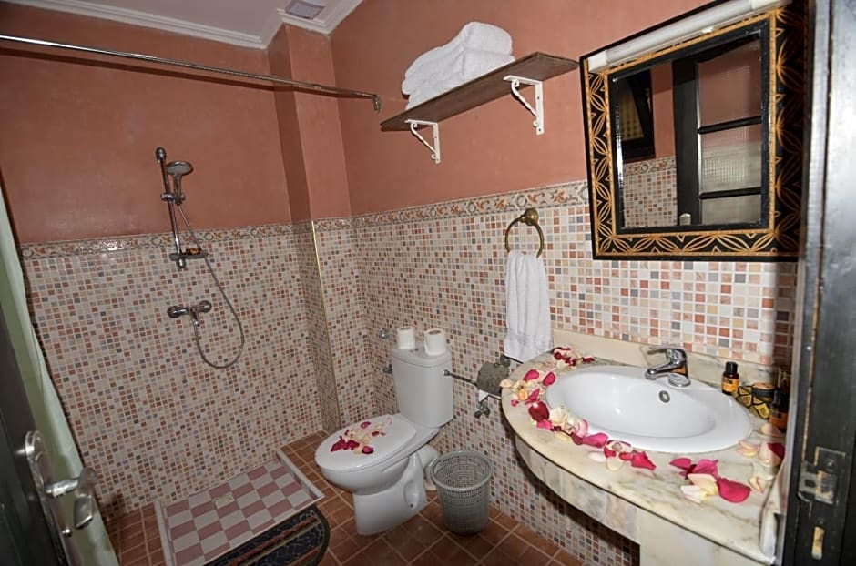 Decorated in an Arabic and Andalusian style, the room with attached bathroom features a flat-screen TV with satellite channels and a telephone.
