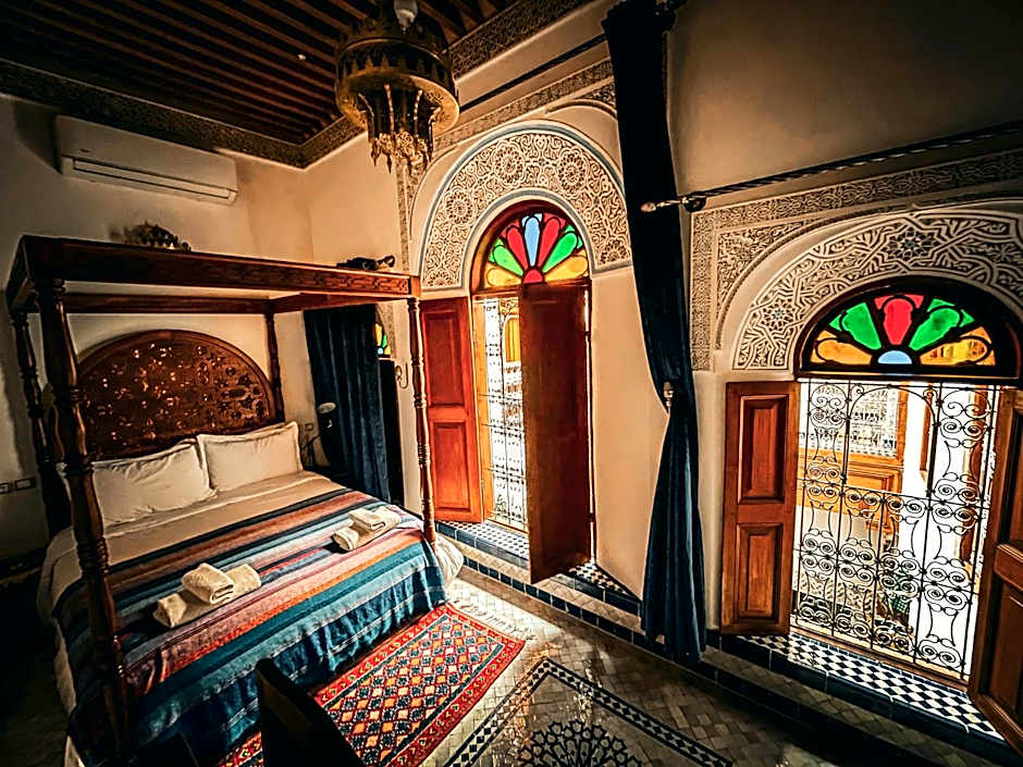RATING BY GUEST SUSANNE: Staying at Riad Rasia felt like stepping into a dream. Every detail of the accommodation was lovingly and beautifully designed. I enjoyed the most restful sleep in the white, immaculately clean, and crisp sheets of a spacious wooden four-poster bed. The staff, particularly Murad, went above and beyond to take care of me. He thoughtfully explained which sites to visit and flawlessly arranged transport for me. Breakfast was an exceptional experience—a feast for the senses. Every dish was artfully presented in beautiful little bowls, with a new delicacy to savor each day. I had my own cozy breakfast corner, complete with a charming rose-patterned sofa, where I could savor my breakfast in perfect comfort.