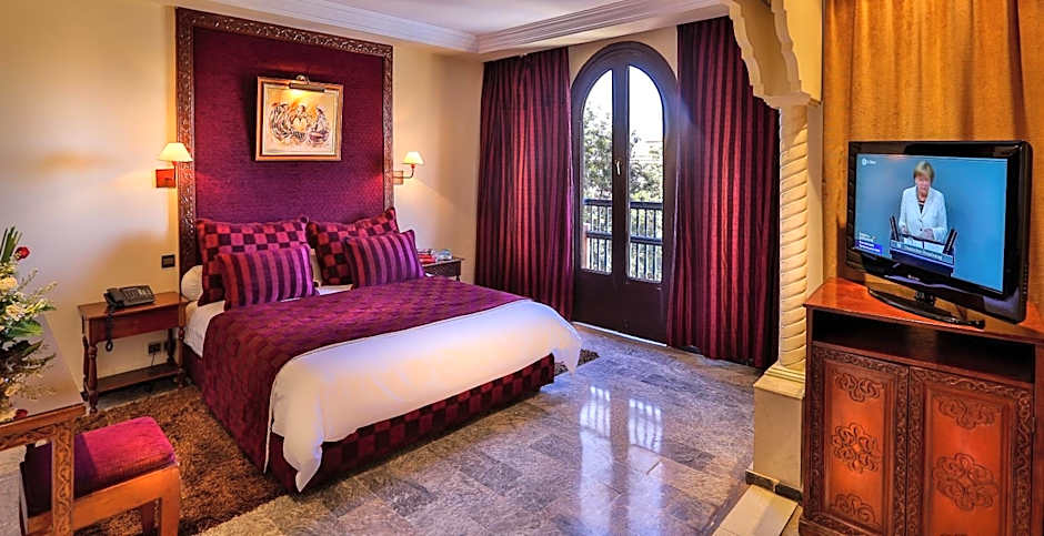 The hotel offers several on-site restaurant options, including Granada / Cordoba, which offers a variety of cuisines including Moroccan, pizza, and international dishes. Another option is Al Amiria, which specifically features Moroccan cuisine. Additionally, guests can dine at Alandalous Terrasse Buffet, where they can enjoy Moroccan and international dishes.