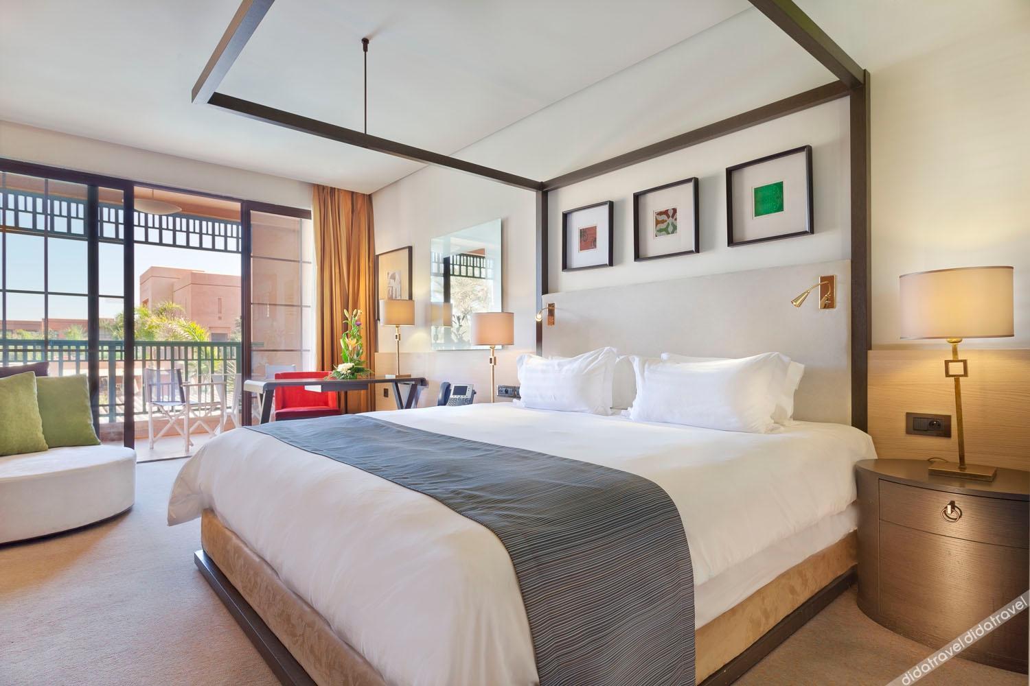 Welcome to Golf Club Rotana Palmeraie, your luxurious 5-star retreat nestled just 3,7mi from the vibrant heart of Marrakesh! Imagine waking up to the sounds of birds chirping and the gentle rustle of palm leaves as you sip your freshly brewed coffee on your private balcony. With prices starting from just $109, this hotel is not only a haven of tranquility but also a remarkable getaway for travelers seeking both adventure and relaxation.