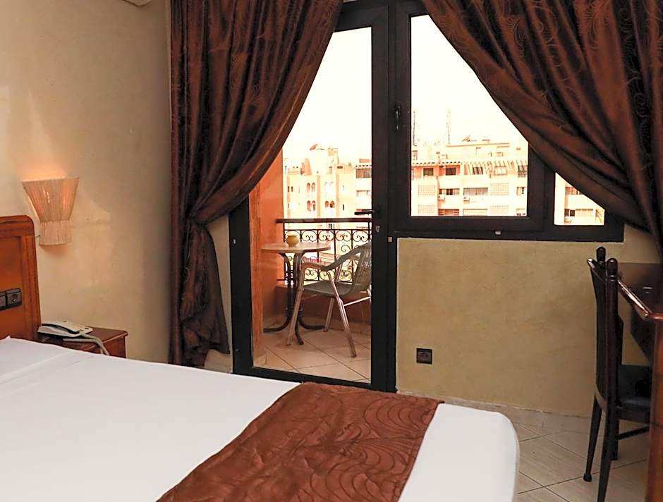 I choose this hotel because it had good price and high reviews. The Hotel has perfect location, just 5 minute walk from the market and main bus stop to airport. Staff speaks english, they are really friendly and helpfull. Breakfast was always fresh and tasy, a lot of diffrent food to choose from. They do have a separate restaurant next to main lobby. There is also parking lane in front of hotel as long as parking space on the next side od the street ( parking costs about 2 dirham per day ). Rooms are clean and the bed was soft. Sheets were changed daily and you could smell they were freshly ironed. Bathroom was simple and tidy, never had a issue with cold water. My room had a balcony going out on the back of the building and was really quiet in spite of being localized near the main street. There is a tv and ac in the room wich i didnt used because it wasnt so hot. There is also a small space in front of the hotel that you can sit and observe traffic. If I go to Marrakesh again I would choose this hotel!