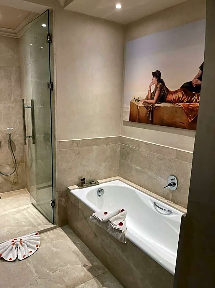 Indulge in a plethora of amenities that cater to both relaxation and recreation. Dive into the sparkling outdoor swimming pool for a refreshing escape or unwind in the indoor swimming pool with the option of extra charges. Savor delectable culinary delights at the hotel’s restaurant, sip a cocktail at the bar, or enjoy private room service while you take in the garden views from your balcony. For those looking to recharge, the spa and Turkish bath are calling your name, while fitness enthusiasts can break a sweat in the well-equipped fitness center.