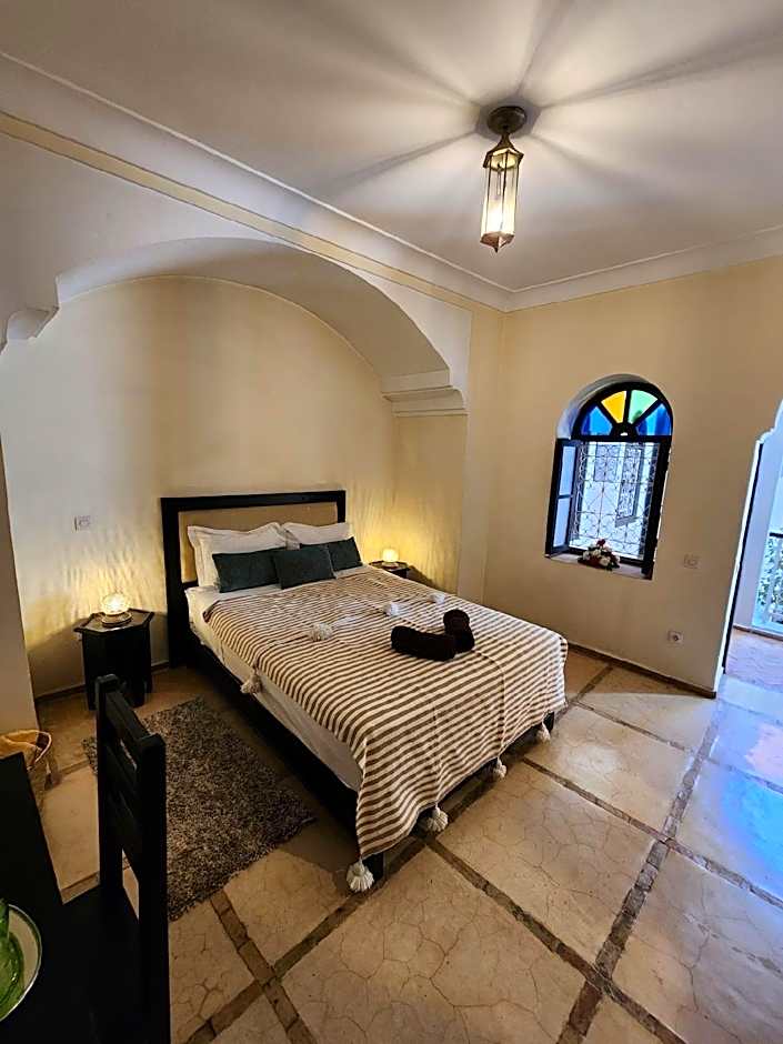 absolutely stunning riad, very beautiful interior and amazing staff who are very accommodating and the sweetest people i’ve ever met at a hotel- also very caring and will go out of their way for you. i am so grateful that i chose this riad. the rooms are beautiful, and you are greeted with smiles and birds every morning, i was so happy to be staying here. it made the trip comfortable and i felt very secure being here. yacine is very sweet and lovely, when we were leaving early for our day trip he insisted us to have breakfast, but because we weren’t able to, he would make us a coffee instead and asked if we needed anything for our journey, achraf would ask the same too. both achraf & yacine made the riad a homely and comfortable place. i loved the location of the riad, it’s in the most cultural part of marrakesh, and it felt as if we were part of the community being in the heart of it. the medina was near by, and also it’s easy to get to places from the riad also. the beds were comfortable, the bathroom was beautiful, everything was cleaned to perfection everyday, even the towels were changed daily - which i wouldn’t have minded having the same one for the entirety of the stay. the breakfast was lovely, the moroccan tea lovely, the shisha was amazing and so was the rooftop! i adored everything about my stay here. me and my now fiancé also proposed on the rooftop under the moonlight, it felt perfect at the riad after a nice long day of exploring. i had told achraf, who then set up our room with a bouquet full of roses and rose petals on the floor which was such a wonderful surprise, i was pretty much shocked in awe. this was perhaps the most beautiful and romantic thing. making our engagement night perfect. thank you very much. achraf and yacine were amazingly accommodating, very sweet, have bright personalities and always happy to help with whatever you need. they definitely deserve all the best.