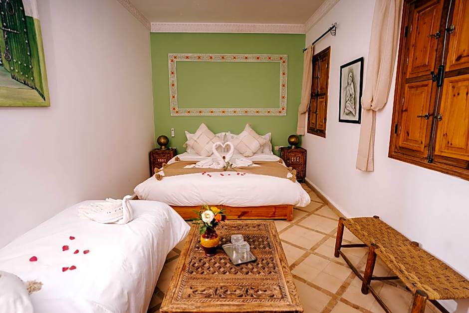 After fueling up for the day, why not take a leisurely stroll around the enchanting riad? Picture yourself wandering through beautifully adorned corridors, with intricate tile work and warm, inviting colors that envelop you in a genuine Moroccan ambiance. As you unwind on the sun deck or lounge on the terrace, you're presented with breathtaking views of the surrounding landscape. The sounds of gentle laughter, birds chirping, and the distant hustle of the city blend together to create a calming escape that makes every moment unforgettable.
