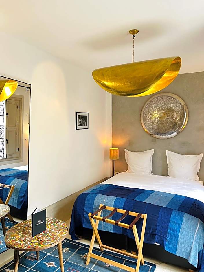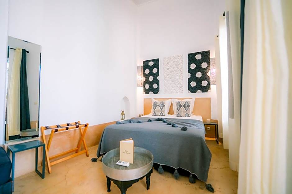 A wonderful calm oasis tucked away in the midst of high energy Marrakech. The hotel is furnished beautifully with plenty of original Moroccan details and each room themed by colour - we had the blue room. The en-suite was roomy with stunning tiles, the bed was comfy and wide and the service was excellent; we had a delicious dinner of vegetarian tagine, and breakfast (the latter included in the price) which was a typical Moroccan start to the day served on a sunny rooftop terrace. We heartily recommend this hotel to travellers but book early as the rooms are limited to only five.