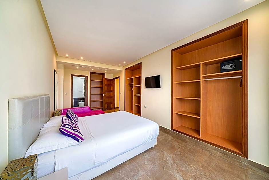 The apartment was brand new and very comfortable. You can rarely have such a quality in a beach resort, be it in Morocco or elsewhere. The staff was very friendly, from the receptionists to security and to the cleaning staff. The gym and the pools were really great. There is a beautiful beach 1.5 Km away called Playa Blanca.