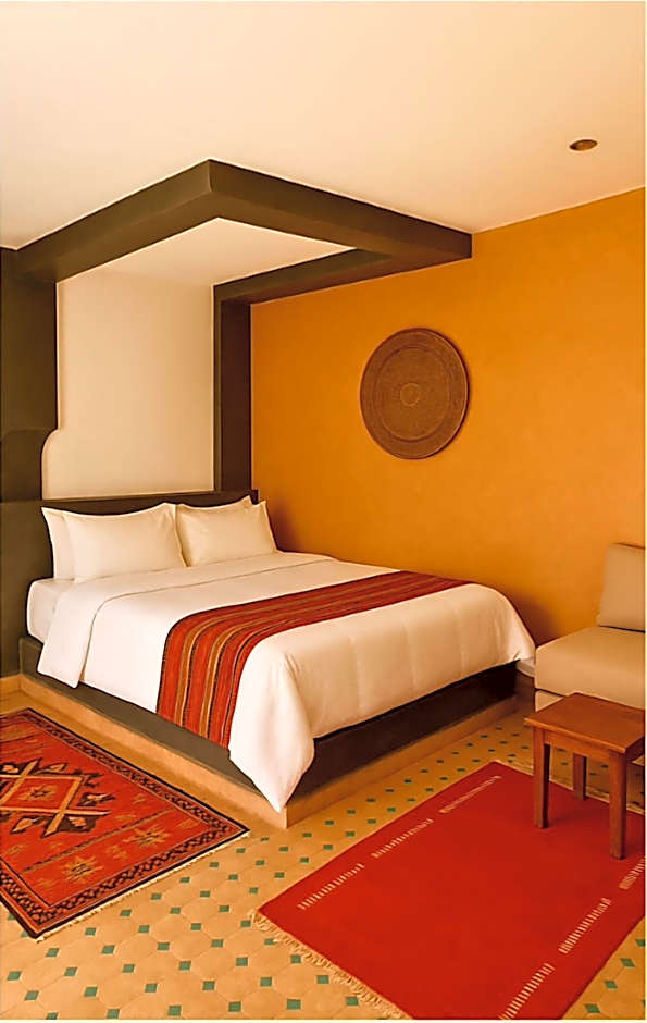 The hotel has a restaurant on site called Marhaba, which offers a family-friendly and traditional ambiance. It serves Moroccan and pizza cuisines.