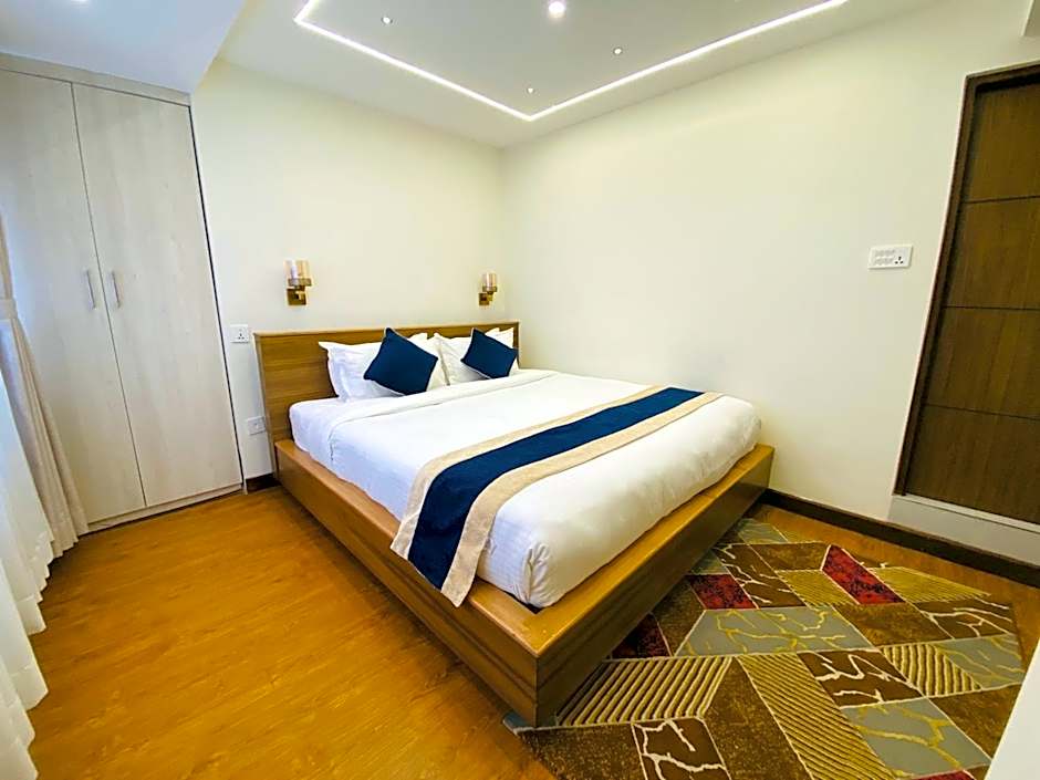 Accommodation options span a broad range, from Deluxe variants and Superior Double to Suites and Apartments, with sizes from about 215 to 862 square feet. Bed configurations vary across layouts, including 1 x Double bed and 2 x Twin beds in Deluxe, Single Use; 3 x Twin beds in Deluxe Triple; 2 x Twin beds in Deluxe 2 Twin; a Queen bed plus Sofa Bed in Suite Balcony; and a King bed plus Sofa Bed in the Studio Apartment. Most rooms are non-smoking, and several layouts feature flexible setups to suit different traveler needs. Address: Thamel Marg, Kathmandu, Nepal.