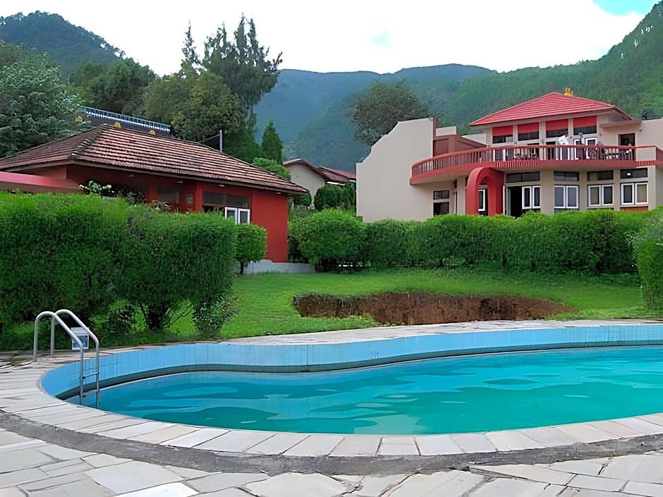 Address: Dollu, Pharphing, Kathmandu, Nepal. Featured amenities include an indoor swimming pool, free Wifi, airport shuttle (extra charges), Bar, 24-hour front desk, and a garden.