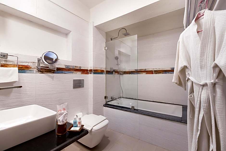 Guests will have a special experience as the suite offers a hot tub. This suite consists of 1 living room, 1 separate bedroom and 2 bathrooms with a bath and free toiletries. The air-conditioned suite provides a flat-screen TV with cable channels, a mini-bar, a tea and coffee maker, a seating area as well as garden views. The unit offers 3 beds.