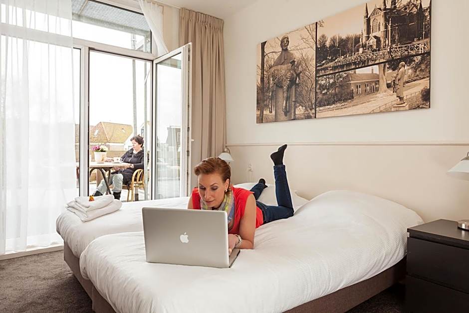 Guests at Hotel Stad en Land can spend their time enjoying various leisure amenities. They can start their day by taking a refreshing dip in the beach, which is provided by the hotel. For those who enjoy outdoor activities, the hotel offers a golf course, where guests can practice their swing and enjoy a round of golf. After a day of fun in the sun, guests can unwind at the hotel's bar, where they can relax and enjoy a drink or two. Additionally, guests can also relax on the sun deck, where they can soak up some rays and enjoy the beautiful view of the surrounding area. Furthermore, for guests who prefer a more active leisure activity, the hotel provides bicycles, allowing guests to explore the area and enjoy cycling. With these leisure amenities, guests at Hotel Stad en Land have various options to make the most of their time during their stay.