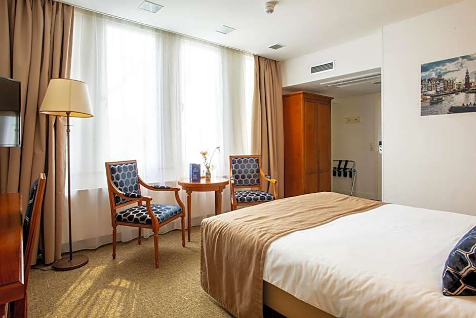 The Comfort Double rooms have a double bed and a bathtub with shower. The rooms are either overlooking the lively Leidsestraat or facing the courtyard.