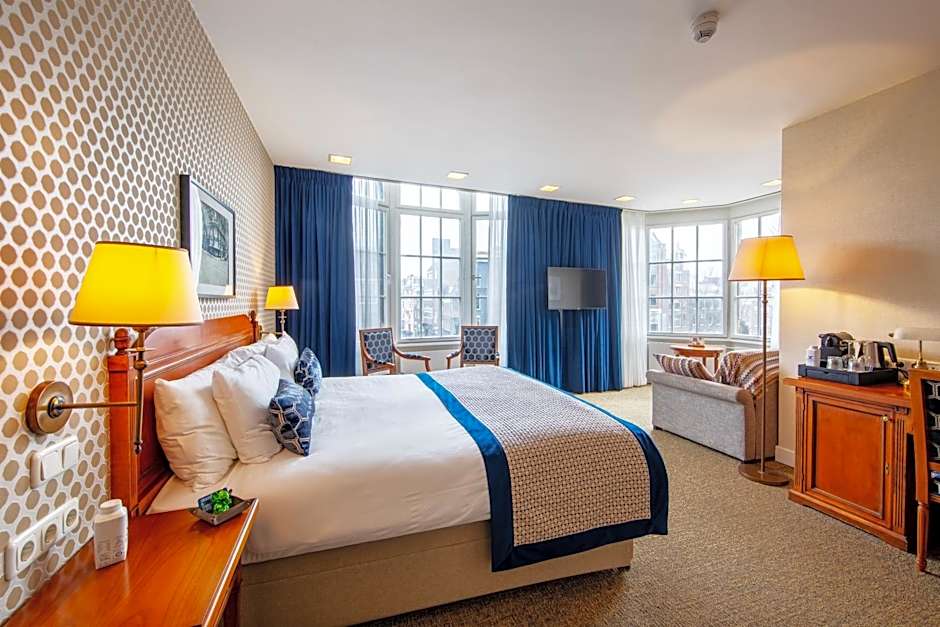 The Superior rooms are located on the corner of the main building overlooking the Leidsestraat and the beautiful Prinsengracht. The Superior canal view rooms in the warehouse are characterized by the original wooden beams ceiling, and can only be reached by some steps.