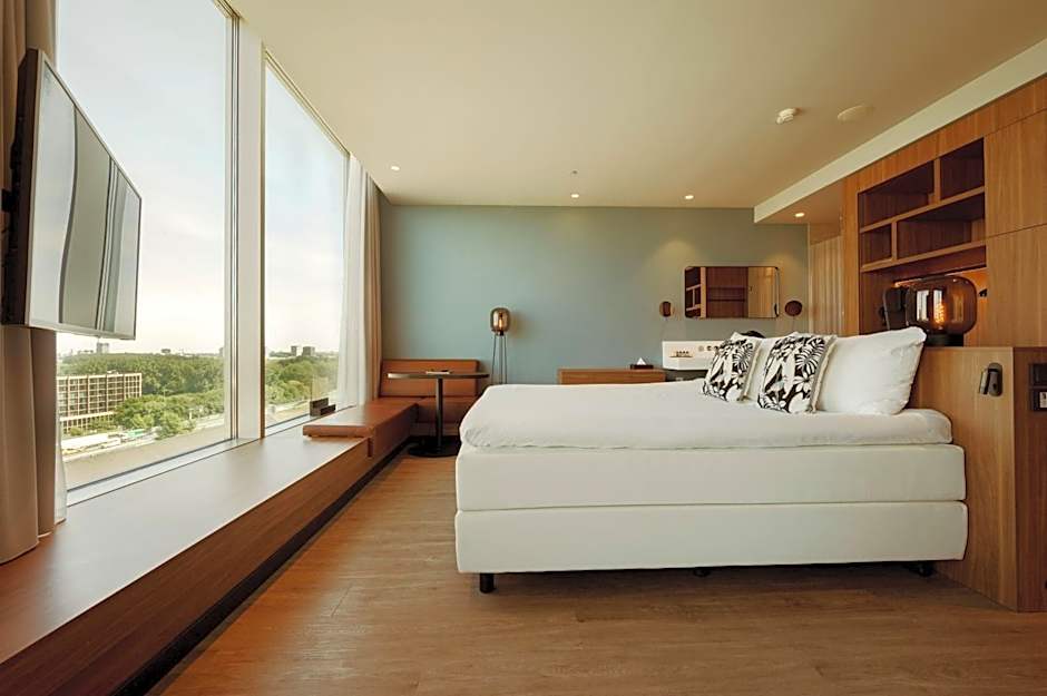 At Van der Valk Hotel Amsterdam Zuidas -Rai, guests have a variety of room options to choose from. The rooms include Family rooms with 2 bunk beds and 1 queen size bed, Comfort King rooms with a queen size bed and a bath, Junior suites with a queen size bed and city view, Comfort King rooms with a queen size bed, Comfort Sky rooms with a queen size bed, Panoramic suites with a queen size bed, Superior Twin rooms with 2 twin beds and city view, Comfort Twin rooms with 2 twin beds, and Superior King rooms with a queen size bed. All rooms are non-smoking.