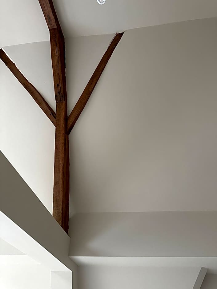 This room is decorated in light colors. It includes 2 armchairs and a small table.