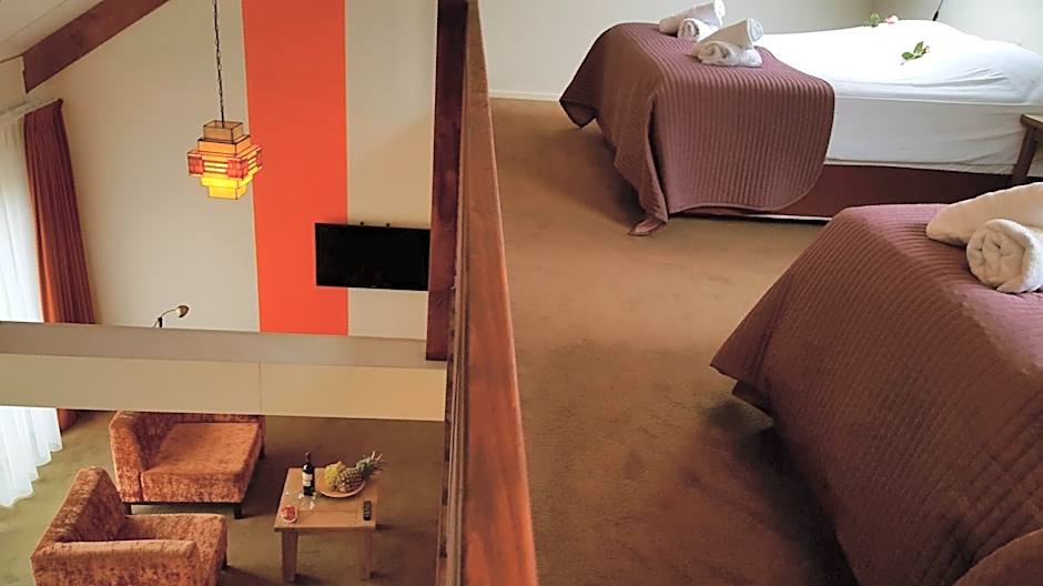 This studio has a seating area and a sleeping mezzanine with only double beds.
