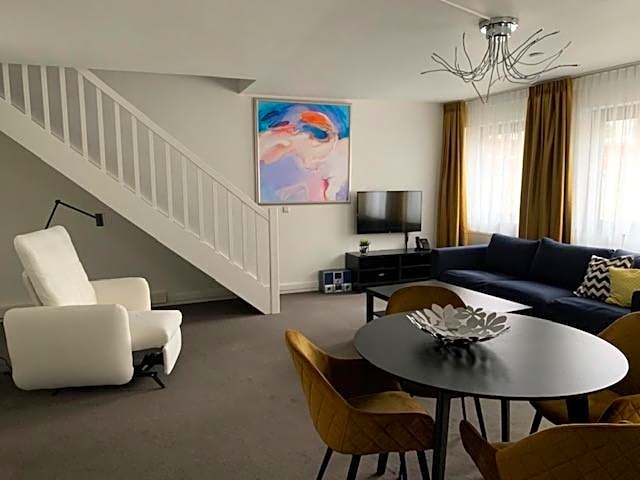 Boasting a private entrance, this air-conditioned apartment includes 1 living room, 2 separate bedrooms and 1 bathroom with a bath and a shower. In the well-fitted kitchen, guests will find a stovetop, a refrigerator, kitchenware and an oven. The spacious apartment offers a TV with cable channels, a washing machine, a coffee machine, a seating area as well as city views. The unit has 4 beds.