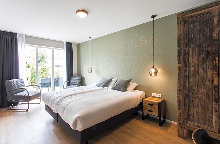This double room with Auping bed and seating area is located on the ground floor in the new part by the monumental building. It has a hypoallergenic PVC floor. The room also has a rain shower, air conditioning, a mini-bar and coffee/tea making facilities. Some rooms offer a garden view or have a private terrace.