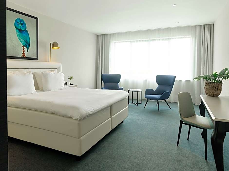 The Deluxe Standard Room at Van der Valk Hotel Den Haag is a double room that accommodates 2 adults and does not allow smoking. It features 2 twin beds and has a room size of 388 sqft.