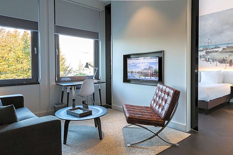 Designed for comfort and style, our Executive Rooms are perfect for one or two guests. Each room features a comfortable double bed, a spacious bathroom, and a cozy sitting area with a flat-screen TV – the ideal place to relax after a day in The Hague.