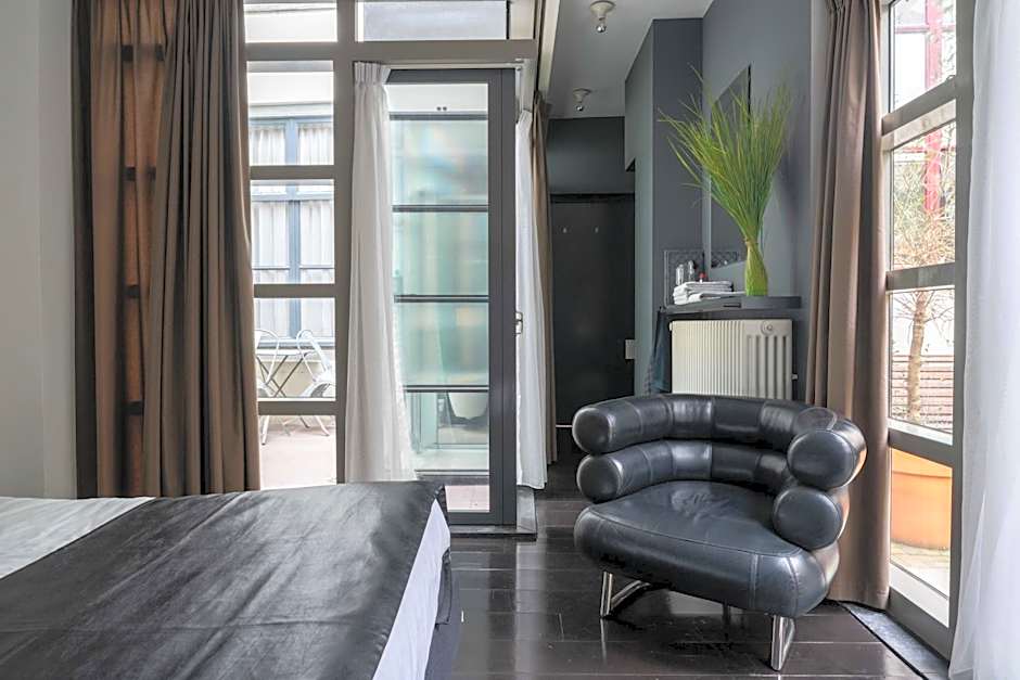 Room options cater to quiet, two-person stays (with room for a child in some cases). The Deluxe Studio Double Room spans 323 square feet and features a queen bed for 2 adults and 1 child; the Deluxe Double Studio also offers 323 square feet with a queen bed for 2 adults; and the Double Room, Terrace at 269 square feet provides a queen bed for 2 adults and 1 child.